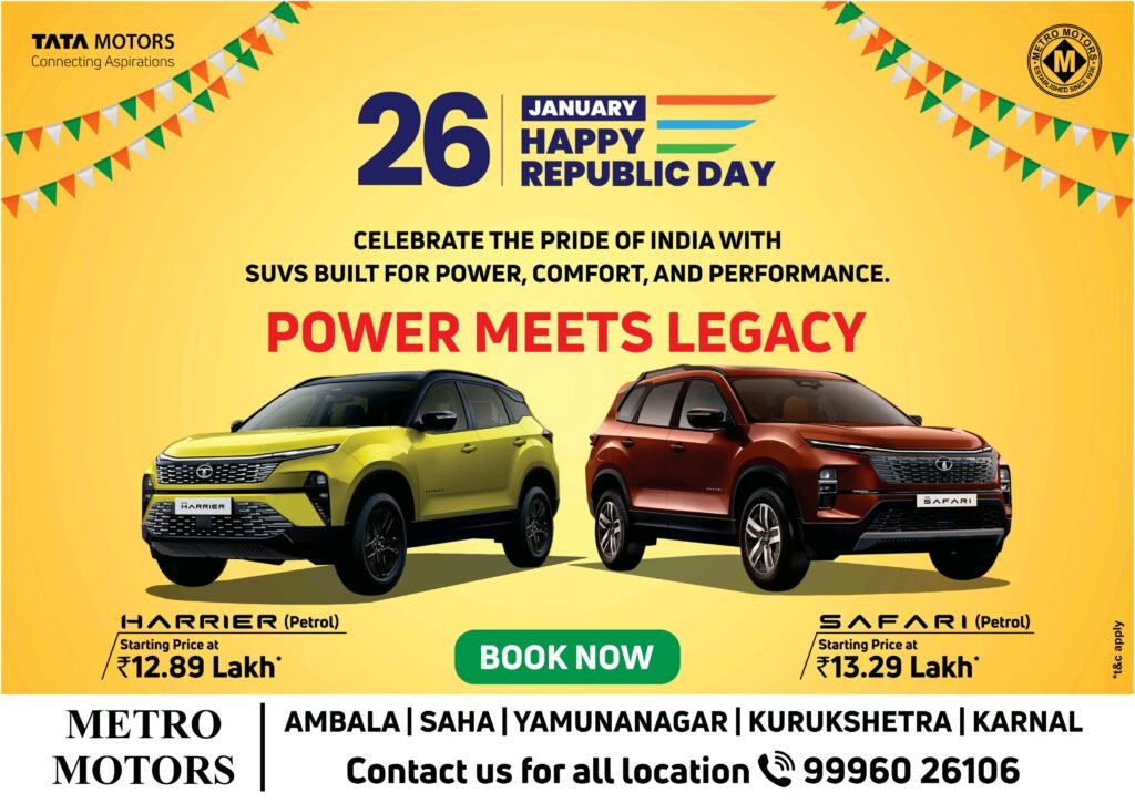 अम्बाला, 24 जनवरीउपमंडल स्तरीय गणतंत्र दिवस की फुलडे्रस रिहर्सल आज एसडी कॉलेज अम्बाला छावनी में हुई। तहसीलदार प्रियंका ने उपमंडल स्तरीय गणतंत्र दिवस समारोह की...