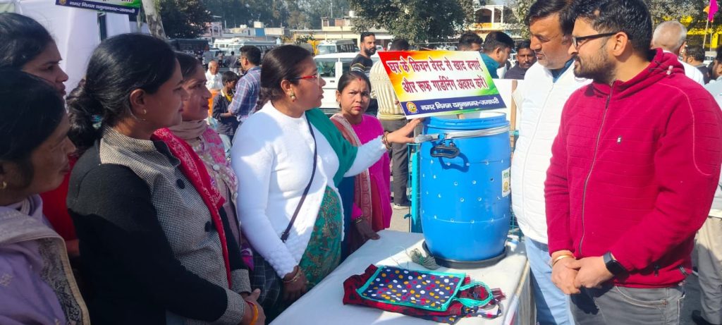 यमुनानगर 15 फरवरी – स्वच्छ सर्वेक्षण 2024 में बेहतर रैंक के लिए नगर निगम द्वारा अनाज मंडी में जागरूकता कार्यक्रम का आयोजन किया गया। निगमायुक्त आयुष सिन्हा के निर्देशों पर कार्यक्रम में नगर निगम की टीम ने लोगों को स्वच्छता के प्रति जागरूक किया। सीएसआई सुनील दत्त के नेतृत्व में आयोजित कार्यक्रम में निगम की टीम ने लोगों को वेस्ट कपड़ों के थैले बनाने और उनमें बाजार से सामान लाने, रसोई वेस्ट से कम्पोस्ट पिट के माध्यम से खाद बनाकर रूप गार्डनिंग करने और सूखा व गीला कचरा अलग अलग कर निगम के वाहनों में डालने के प्रति जागरूक किया।