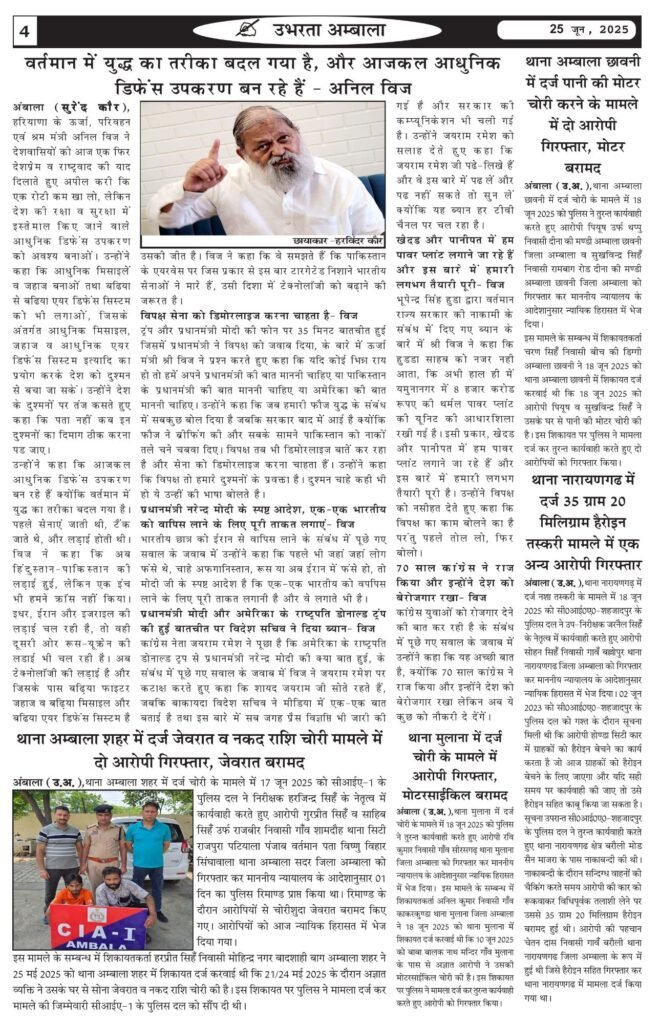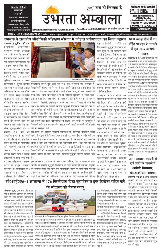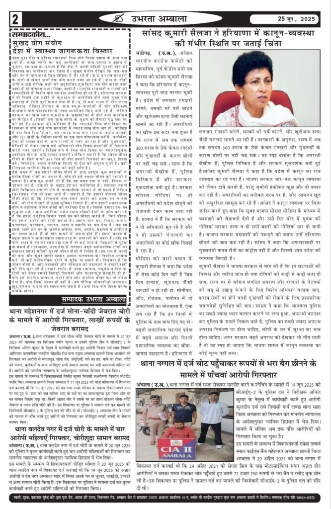 Home2025June25E-paper 25 June 2025 Ubharta Ambala Posted in E-paper अपराध अम्बाला खेल चंडीगढ़ ब्रेकिंग न्यूज़ मुख्य समाचार हरियाणा E-paper 25 June 2025 Ubharta Ambala on June 25, 2025June 24, 2025 Ambala Dastak Page-1 Page-2 Page-3 Page-4