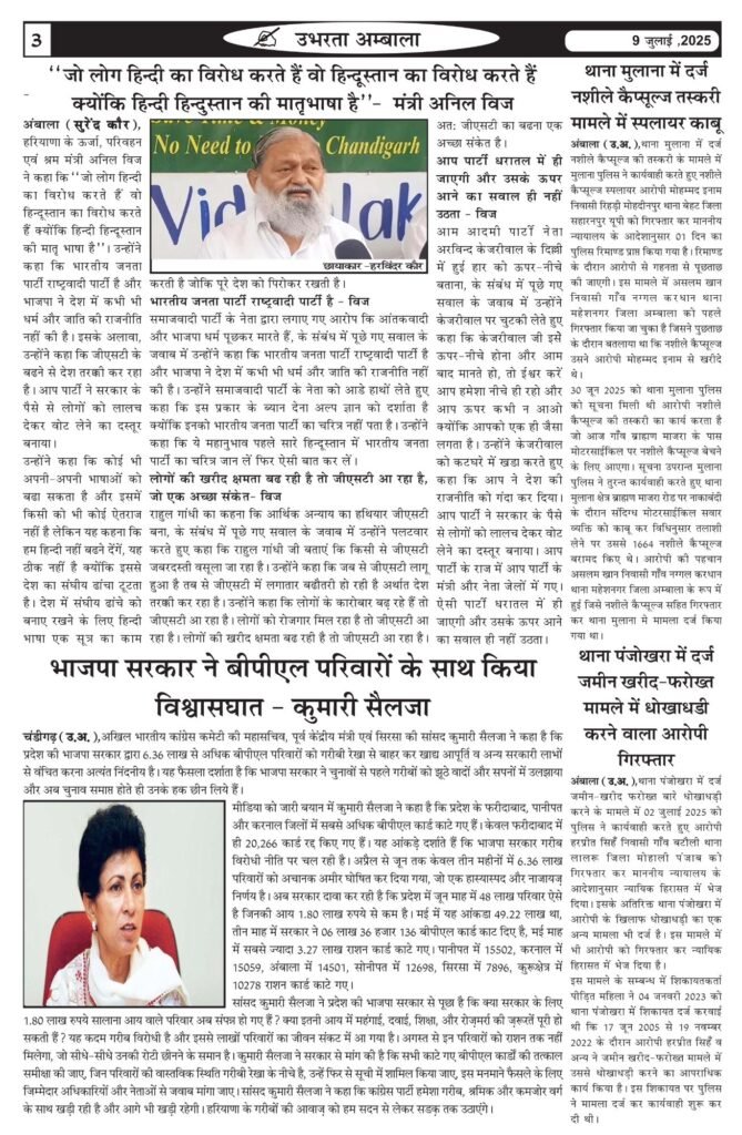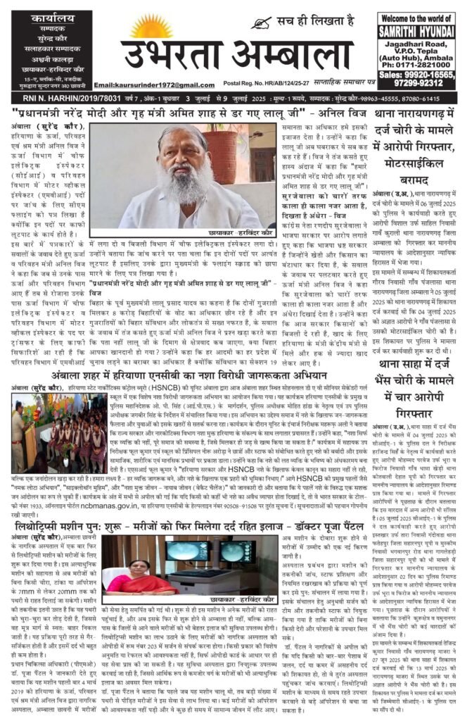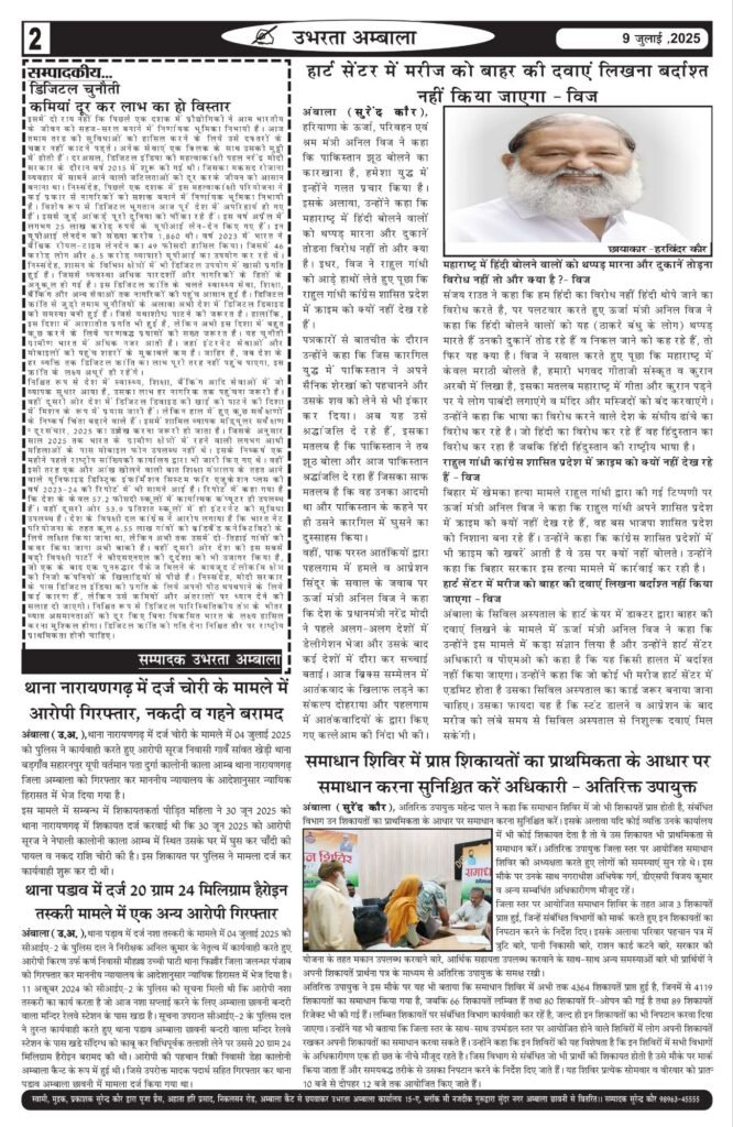 Home2025July9E-paper 9 july 2025 Ubharta Ambala Posted in E-paper अपराध अम्बाला चंडीगढ़ ब्रेकिंग न्यूज़ मुख्य समाचार वायरल हरियाणा E-paper 9 july 2025 Ubharta Ambala on July 9, 2025July 9, 2025 Ambala Dastak Page-1 Page-2 Page-3 Page-4